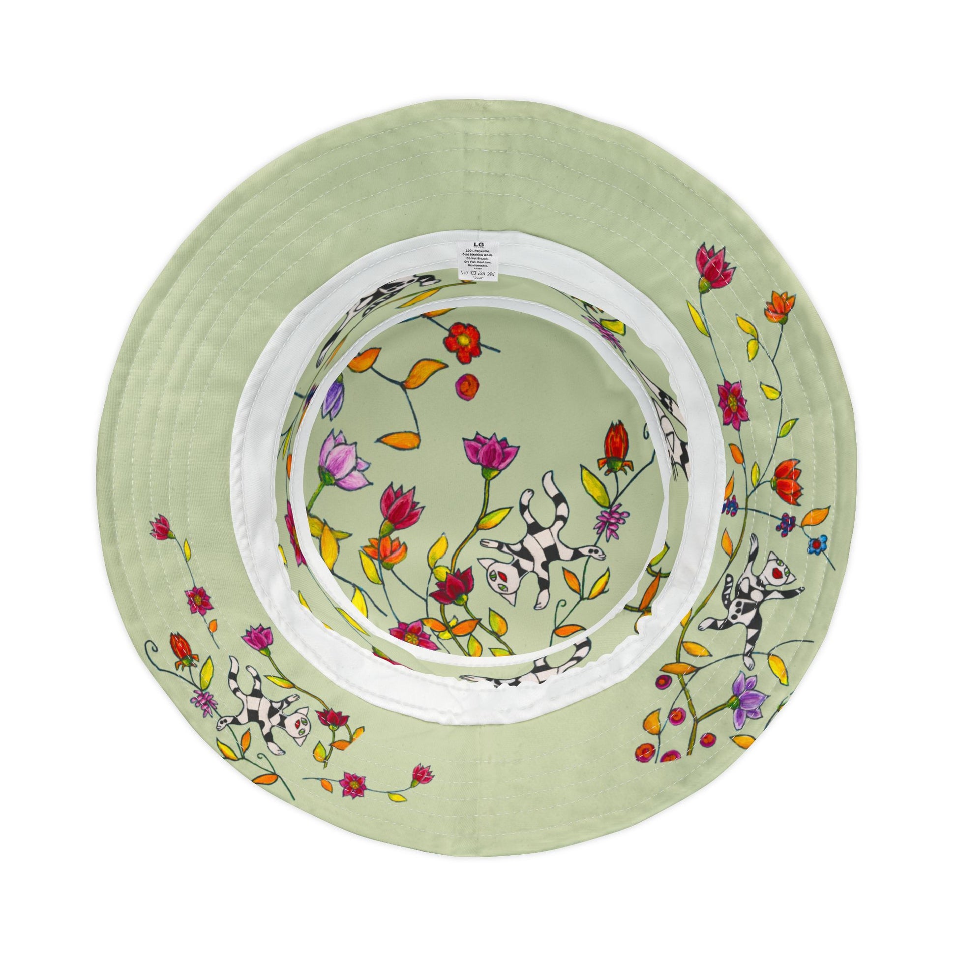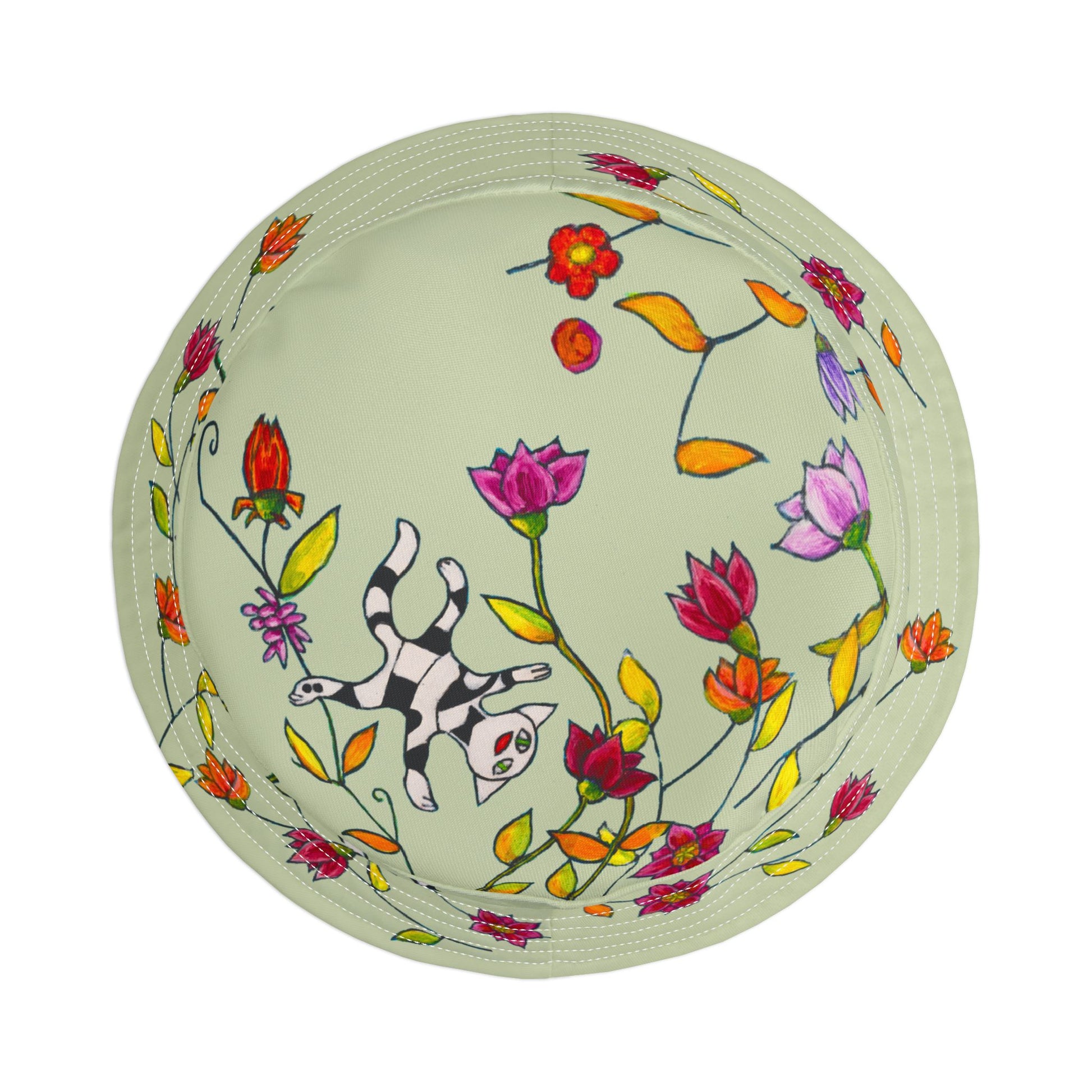 Bucket Hat (AOP) - Motiv: Katze fliegt, Ranken, grün
