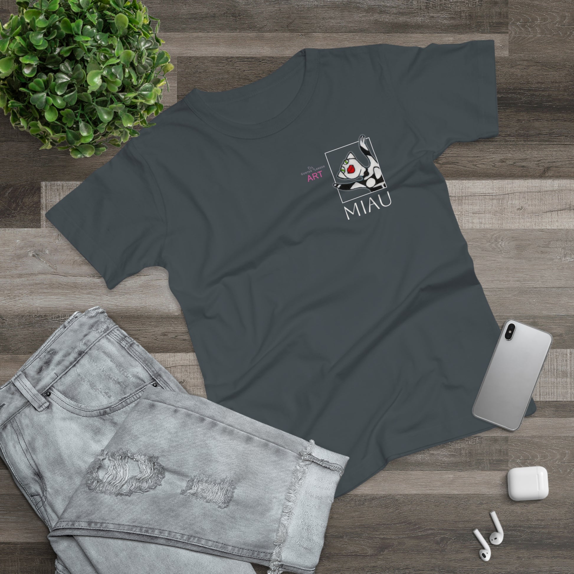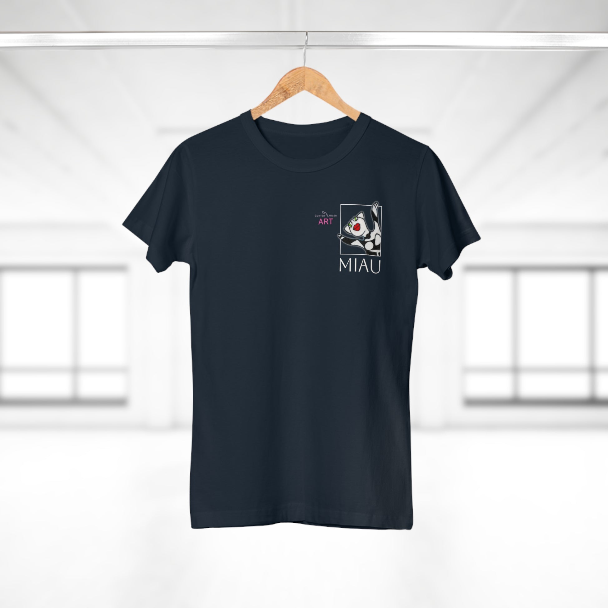 • Single Jersey Women's T-shirt - dunkel - Motiv: Miau, H 9,7 cm