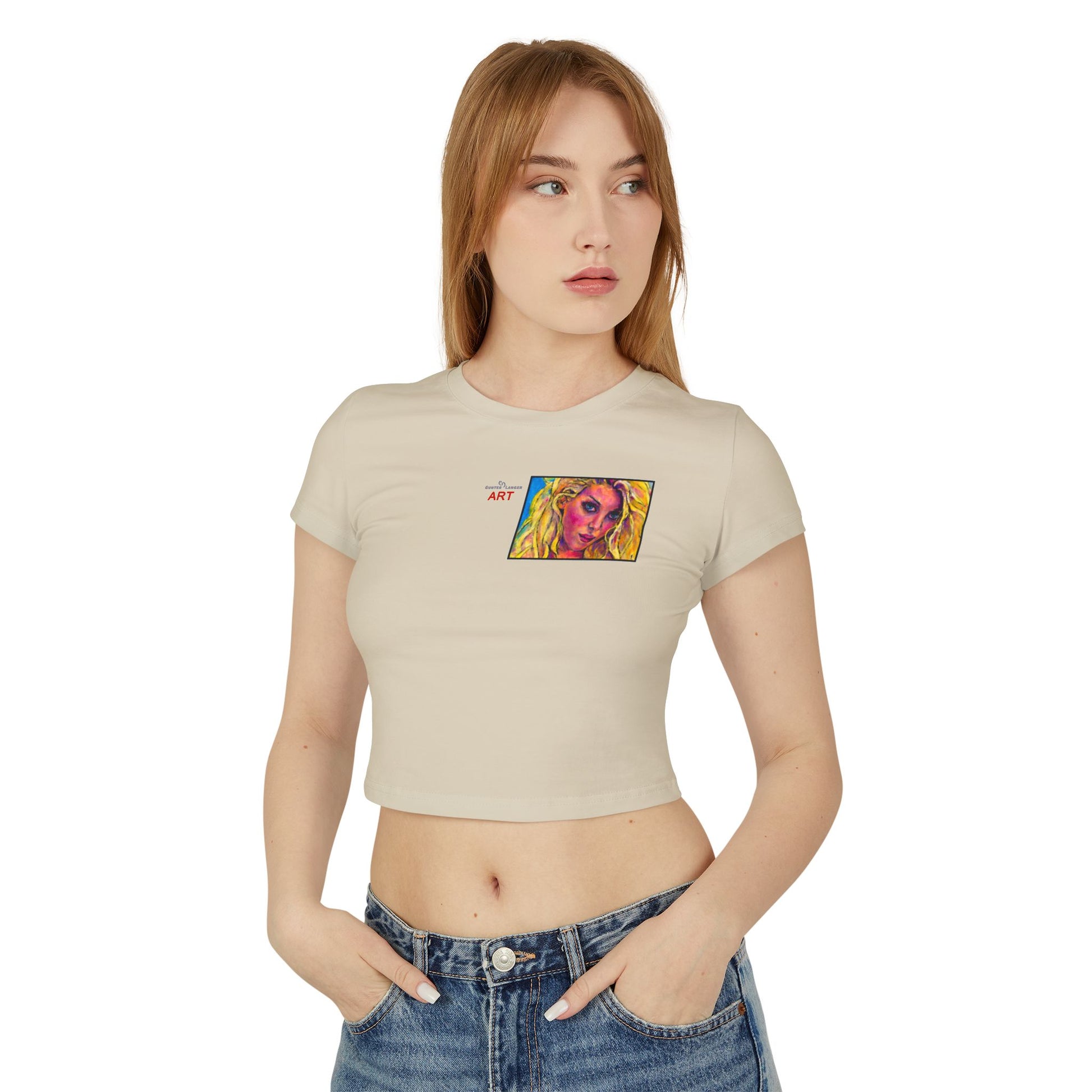 This women's baby tee is designed with a slim fit and mid-length cut, offering a flattering silhouette. Made from 100% organic cotton rib, it provides both comfort and sustainability, making it a versatile and stylish choice for everyday wear.