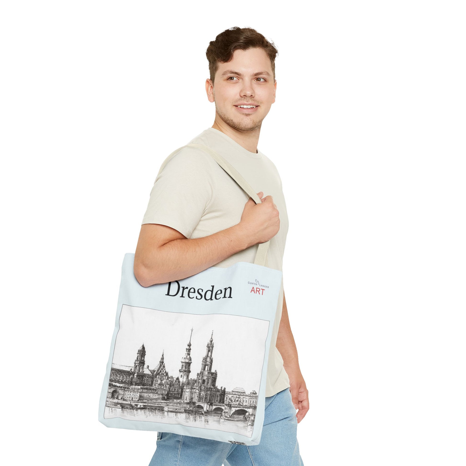 Mein Dresden‑Motiv „Terrassenufer Hofkirche Schloss“ kommt auf der Tragetasche perfekt zur Geltung. Das Motiv zeigt die majestätische Silhouette der Altstadt mit einigen der schönsten Wahrzeichen der sächsischen Landeshauptstadt. Das Bild wurde vollständig von mir von Hand mit Bleistift gezeichnet. Die feinen Schraffuren und feinen Linien verleihen dem Kunstwerk eine natürliche, ruhige und historische Anmutung. Die Tasche ist für Dresdner, Dresden-Liebhaber oder Touristen ein besonderer, aufsehenerregender Begleiter. Als Geschenk oder auch einfach zum selberbehalten.