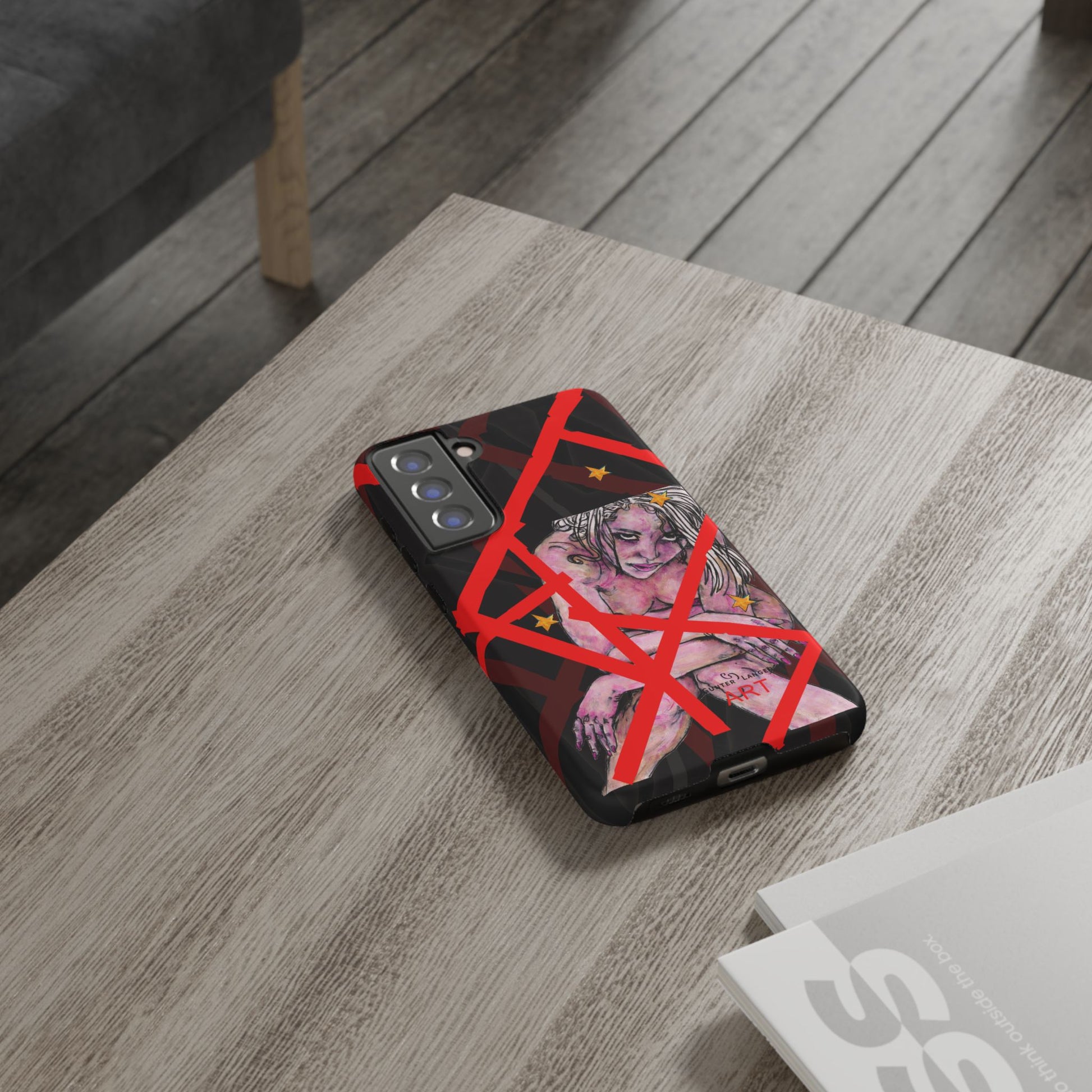 Das Mikado Design in kräftigem Rot geht hier mit der provokanten Stella eine interessante Verbindung ein. Die dunklen Farben wirken edel und bringen die kreative Gesamterscheinung perfekt zur Geltung. Mein Mikado Design entwickelte sich auch auf Mouse-Pads, Rucksäcken, T-Shirts und anderen Artikeln aus dem Shop zum echten Bestseller.