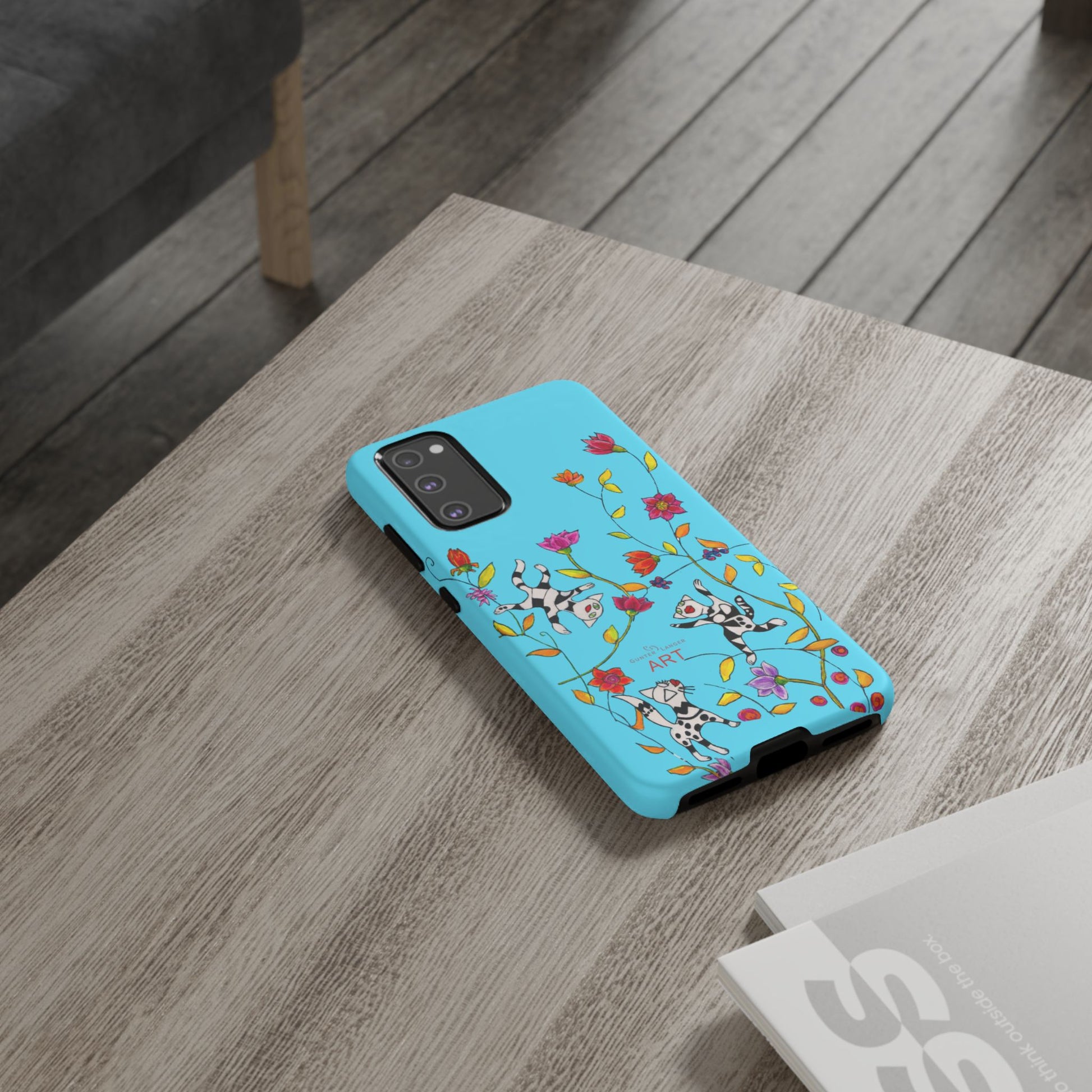 Die karierten Katzen sind Details aus meinem Acrylbild „Carolin“. Dieses Bild „Carolin“ ist auf weiteren Artikeln im Shop zu finden und auch als fertig individuell gerahmter Kunstdruck bei Meisterdrucke.de in höchster Qualität erhältlich. Mit „Carolin“ und den schwebenden Katzen ist mir ein besonderes Motiv gelungen. Mit dieser Handyhülle hebt man sich von der Masse ab. Meine Katzenmotive sind Bestseller. Perfekt als Geschenk oder zum selberbehalten.