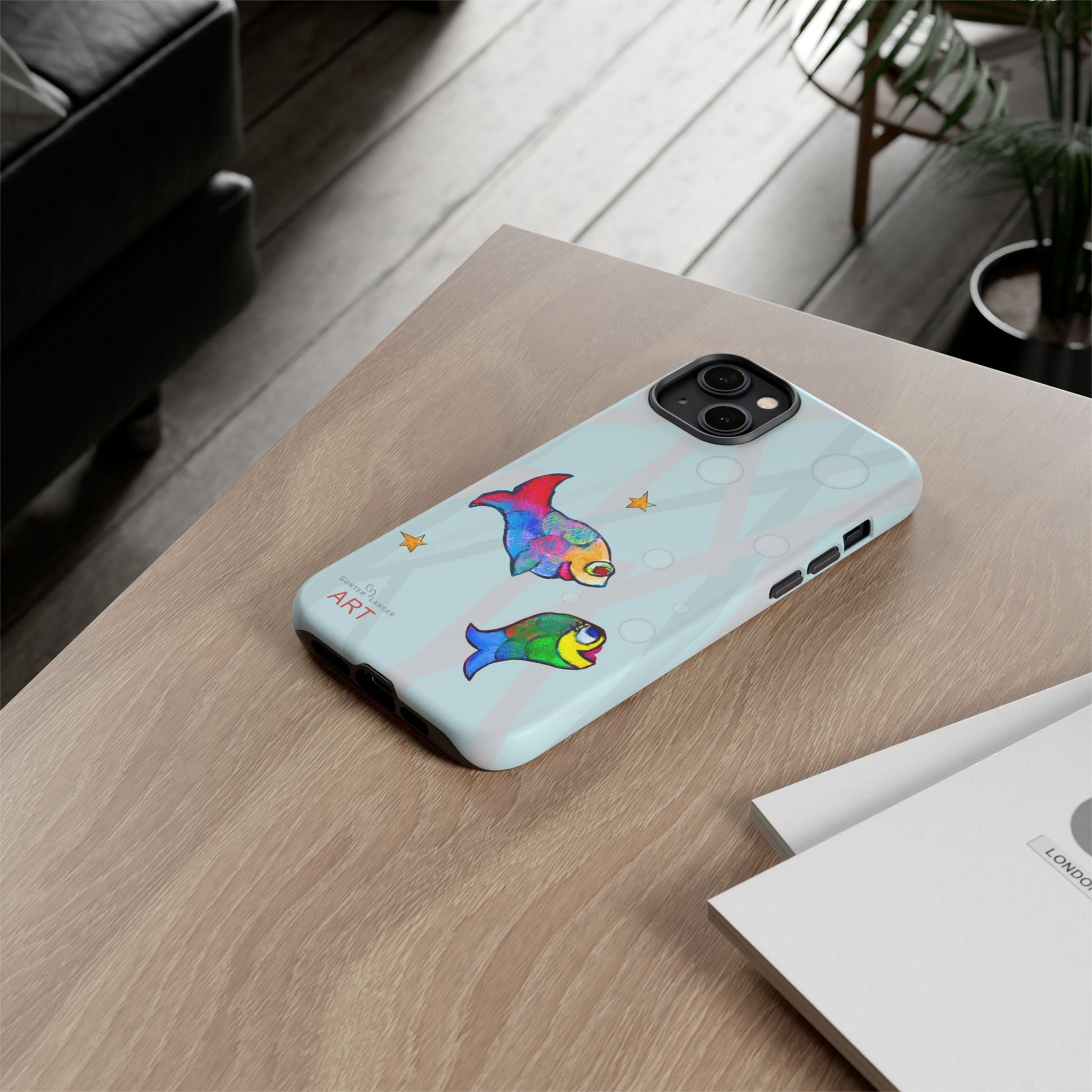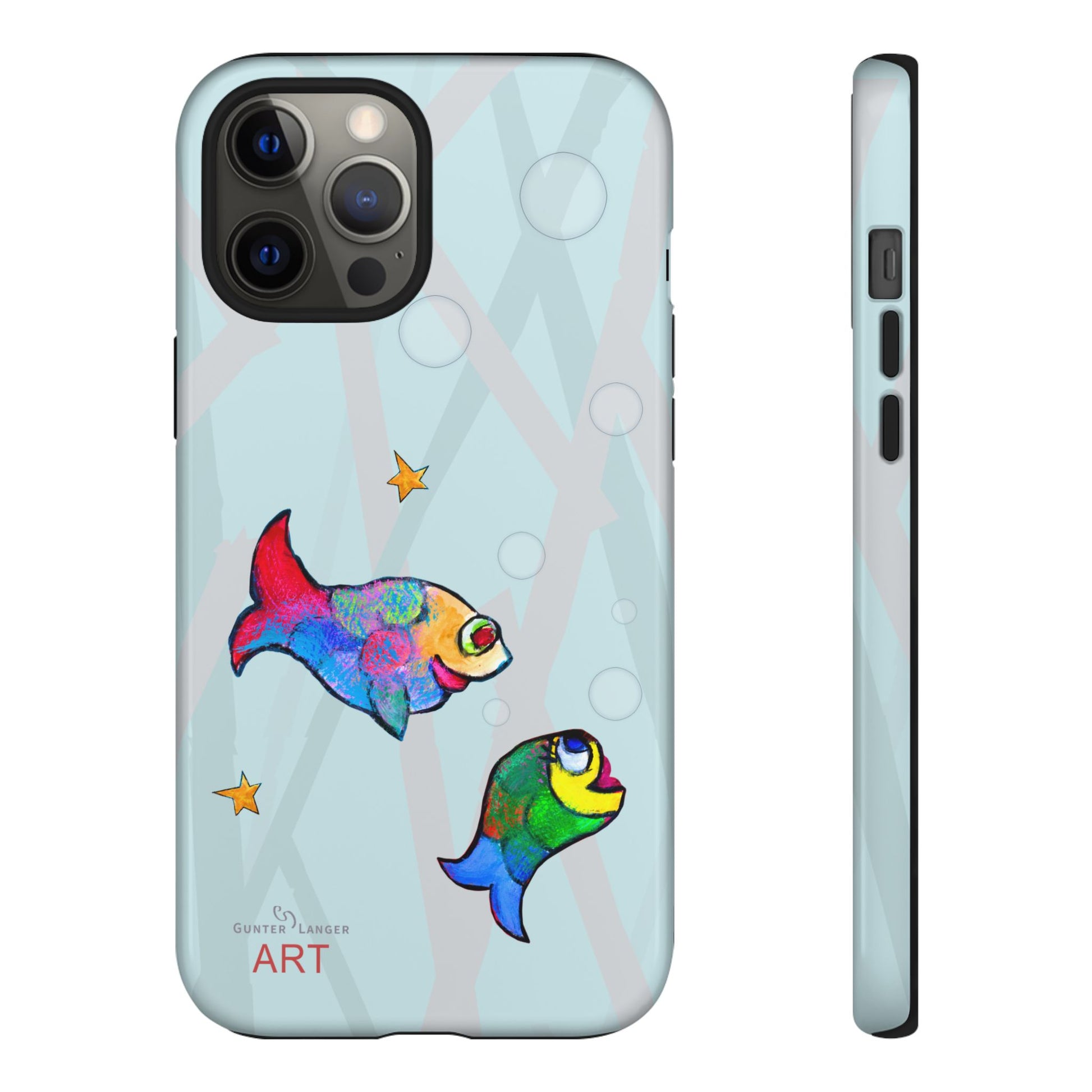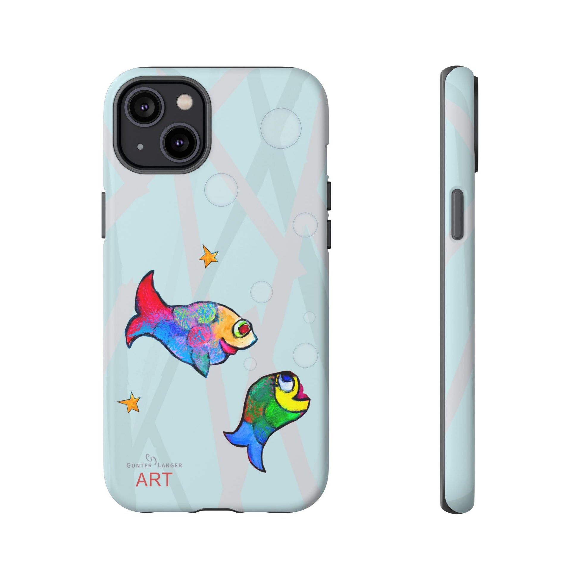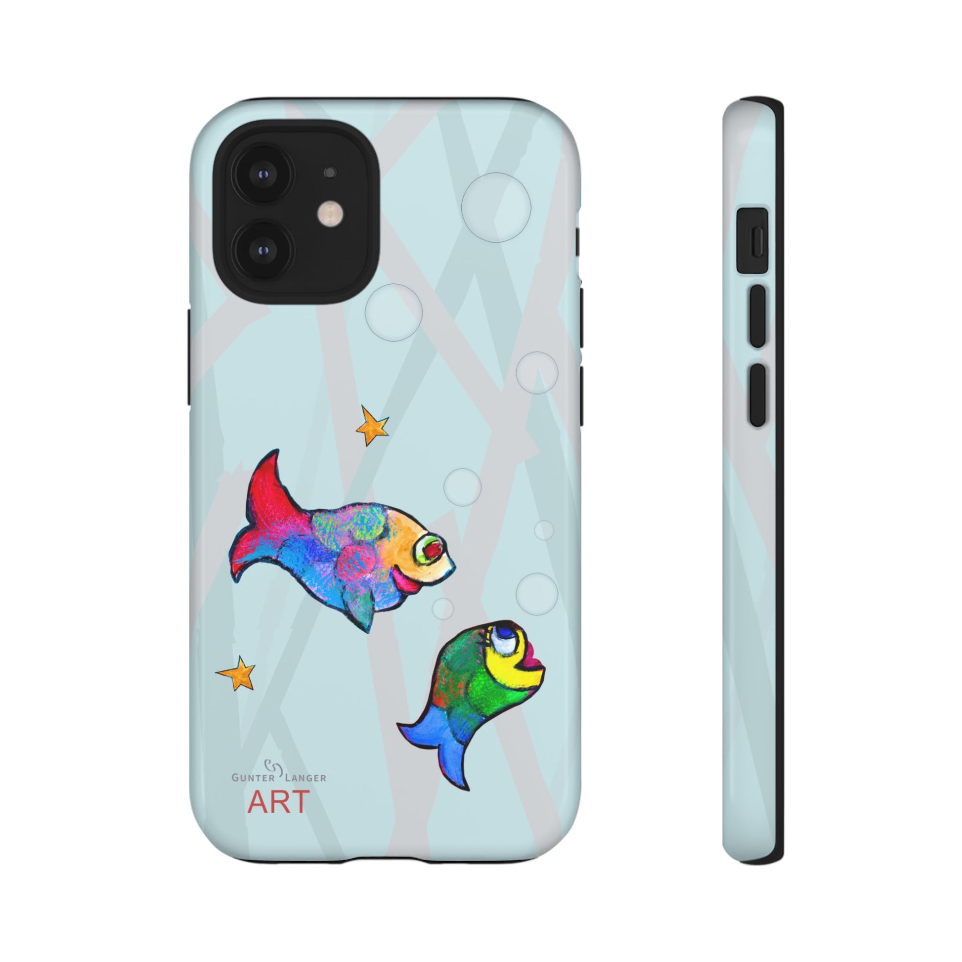 Mein einzigartiges Fische-Motiv ist ein absoluter Bestseller. Die farbenfrohen Fische sind nicht nur auf diesem Handy Cases, sondern im Shop auch auf T-Shirts oder Rucksäcken zu finden. Das kreative Tiermotiv macht diese Handyhülle zu einem einzigartigen Hingucker. Perfekt für Menschen, die individuelle Kunst, Natur, Wasser, Meer und kreative Designs lieben.
