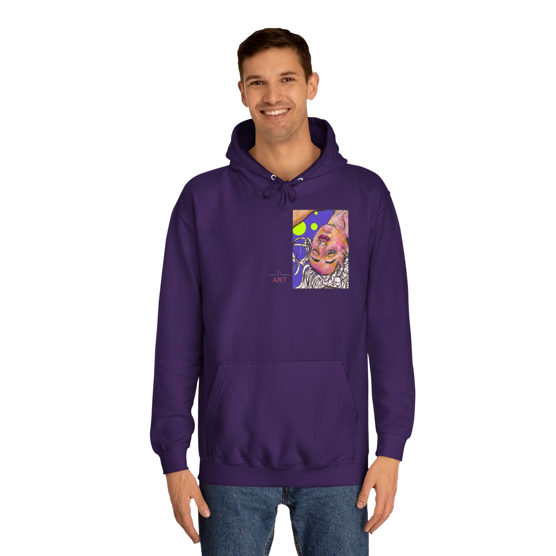 Unisex College Hoodie - Pop Art - unique - Motiv "Logo" & "Hanna" (violett) Put new life into a classic wardrobe staple with your own art. This hoodie features a unisex design with side seams that help the garment retain its shape on the long run. With a spacious kangaroo pocket for enhanced daily practicality, a comfy true-to-size fit, and multiple colors to choose from - these hoodies provide a cozy wearing experience packed with style. .: 80% cotton, 20% polyester (fiber content may vary for different colors) .: Medium heavy fabric (8.3 oz /yd² (280 g/m²)) .: Loose fit .: Tear-away label .: Runs true to size .: WRAP, Sedex and PETA certifications