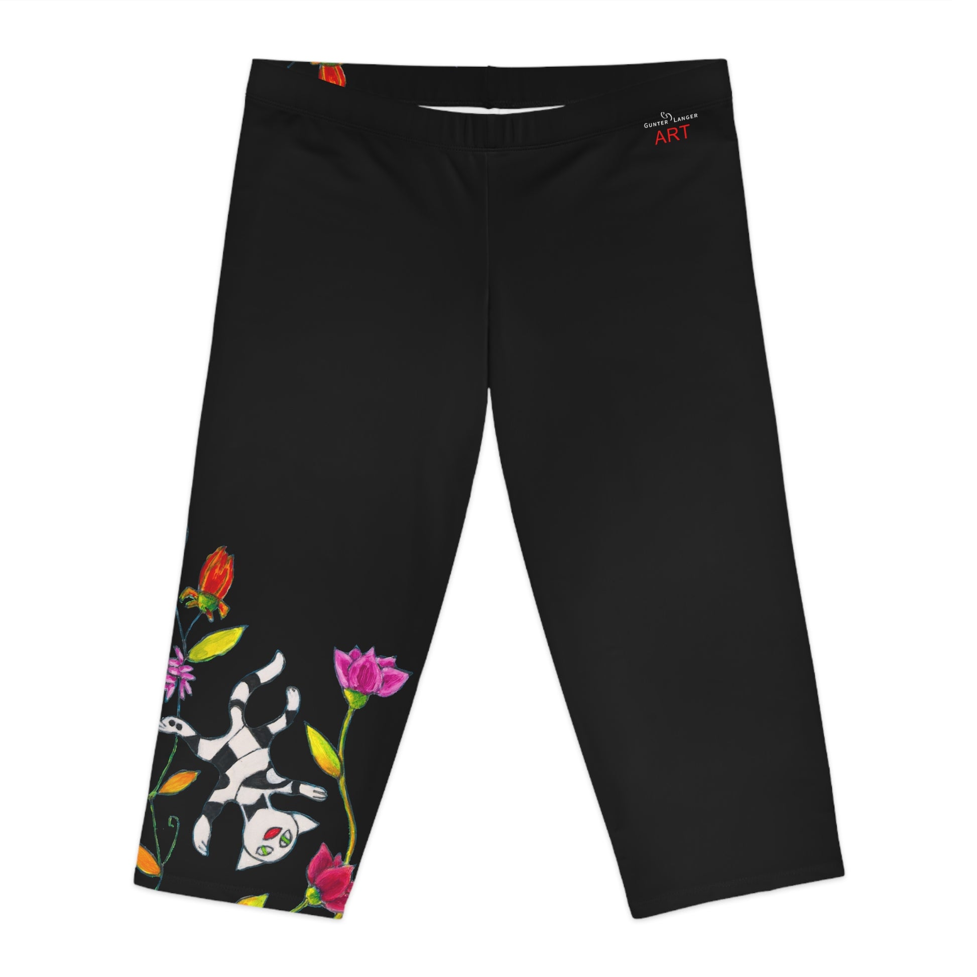 Hier ist sie, die ultimative Design-Hose "Capri fliegende Katzen Ranke schwarz", außergewöhnlich, top-modisch, extravagant - für Individualisten und Katzenliebhaber ein Musthave! Das Motiv "fliegende Katzen" geht mit den Ranken aus meiner Kollektion eine stylische Symbiose ein. Ein Statement für die Katzenfreundin. Absolut im Trend, mit einem besonderen Tragegefühl - als Geschenk oder zum selbst behalten und nie wieder hergeben - der Sommer kann kommen!